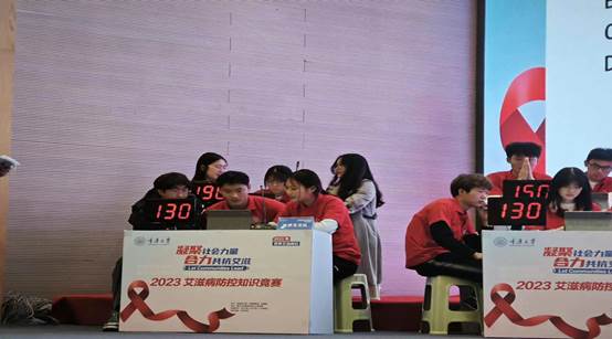 为贯彻落实宣传普及艾滋病防治知识,进一步加强学校的艾滋病防控工作,学校于2023年11月30日开展了以预防艾滋病为主题的知识竞赛活动。本次决赛共有8支队伍,每一支队伍3名参赛选手。色花堂
