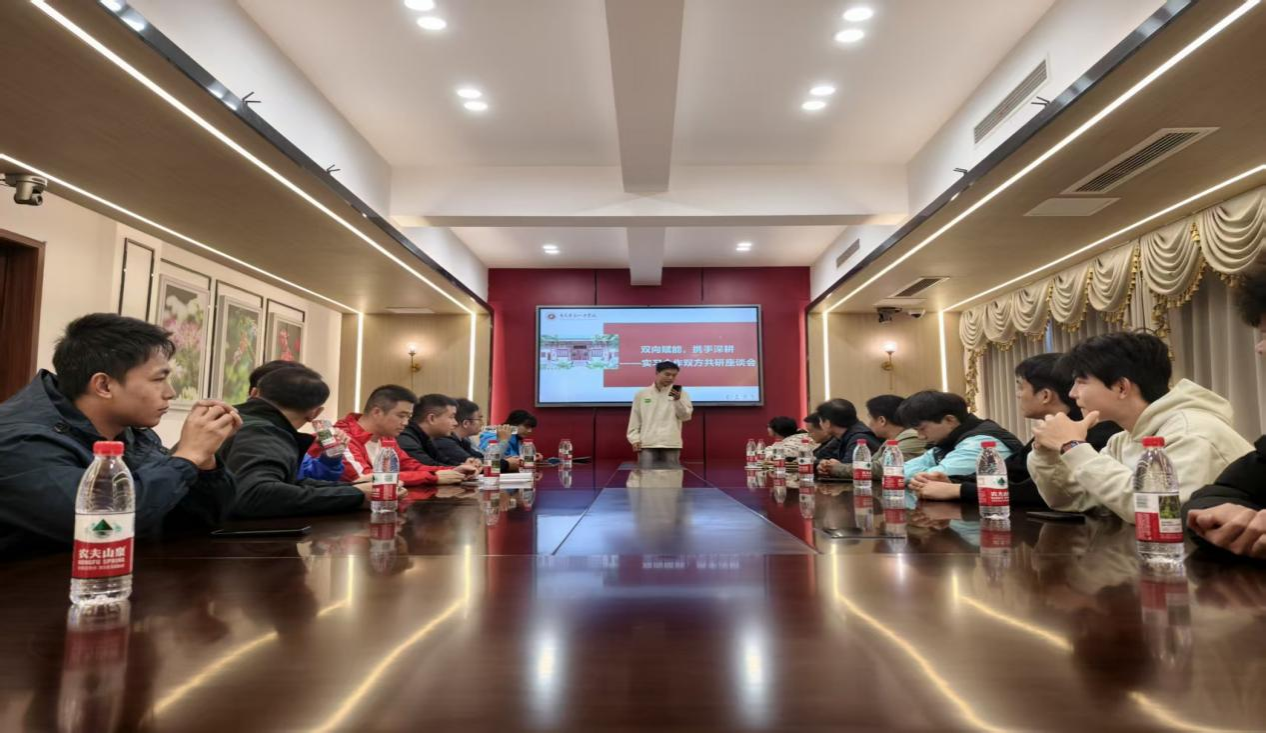 党委书记田辉、副院长向祖兵、专业体育系主任娄方平携12名2022级实习学生与重庆一中纪委书记周鹊虹及体育组吴军民、刘欢、文杰、申金刚等指导老师展开了一场干货满满的座谈,座谈会由重庆一中文杰老师主持。