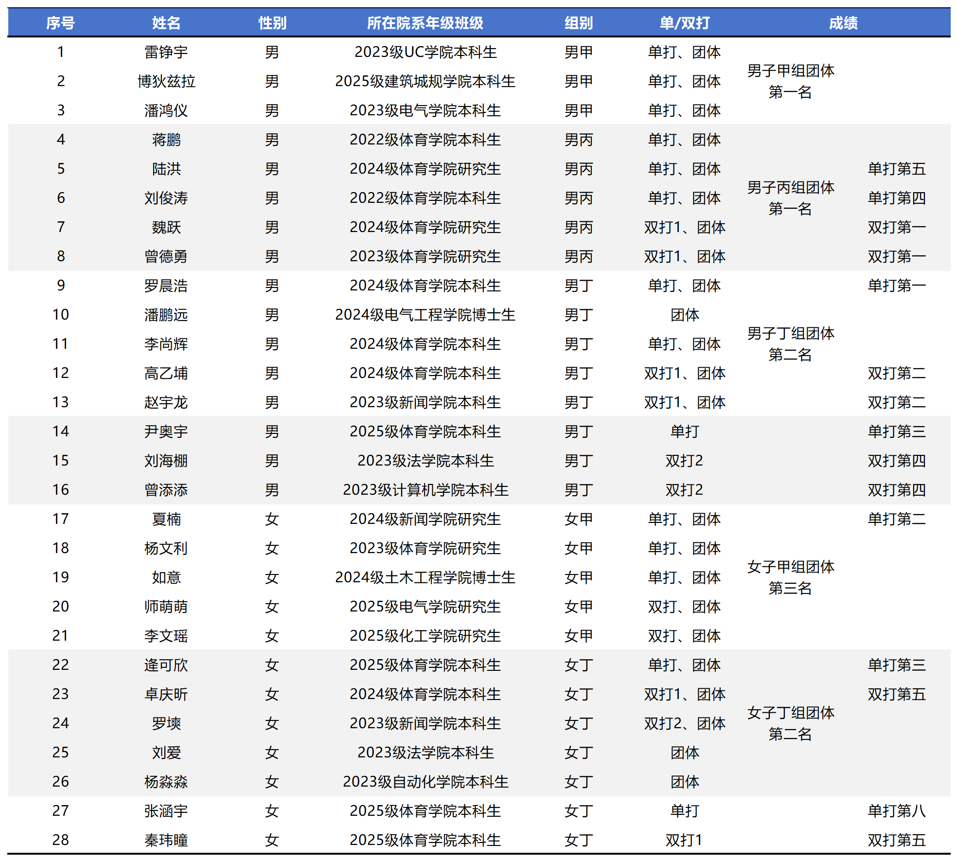 近日,由重庆市教育委员会主办的2025年重庆市大学生网球比赛在长江师范学院、涪陵奥体中心圆满落幕。重庆大学网球队派出30余名运动员参赛,在多个组别中表现出色,共斩获17项奖项,其中包括4项第一名、4项第二名、3项第三名,充分展现了重庆大学学子的竞技水平和体育精神。