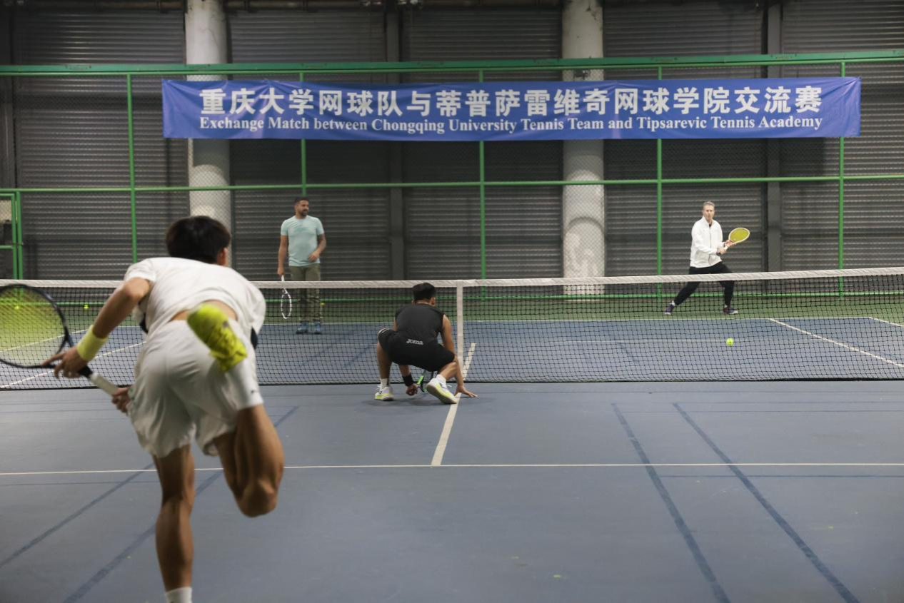 活动尾声,四位国际网球选手移步校网球馆,与重庆大学网球队展开友谊交流赛,以球会友,切磋技艺,为现场师生呈现了一场高水平的网球互动盛宴,也为此次跨国交流画上圆满句号。
