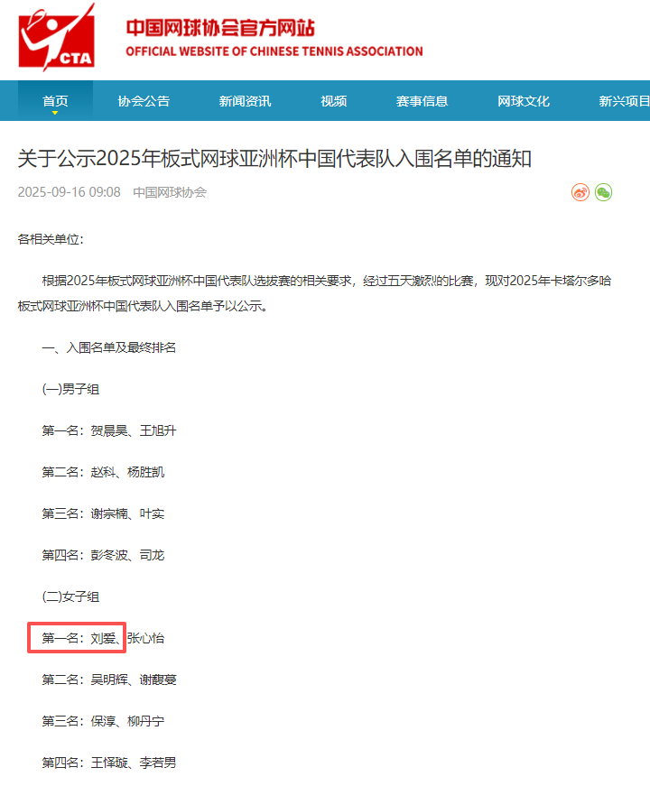 2025年9月,重庆大学高水平运动员刘爱(法学院2023级本科生)凭借出色的竞技表现和坚韧的体育精神,在为期五天的国家队选拔赛中以总排名第一的成绩强势入选2025年亚洲杯中国代表队,并将作为主力队员随队出征10月在多哈举行的亚洲最高级别赛事。这是重庆大学历史上首位入选国家级板式网球项目的学生运动员,也是我校体育育人成果在新兴项目上的又一次突破。